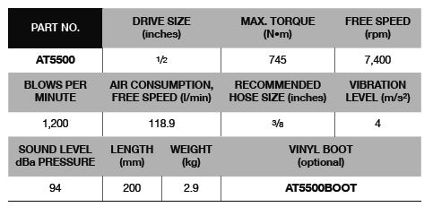 • Twin-hammer impact mechanism designed to hit hard yet offer tool longevity