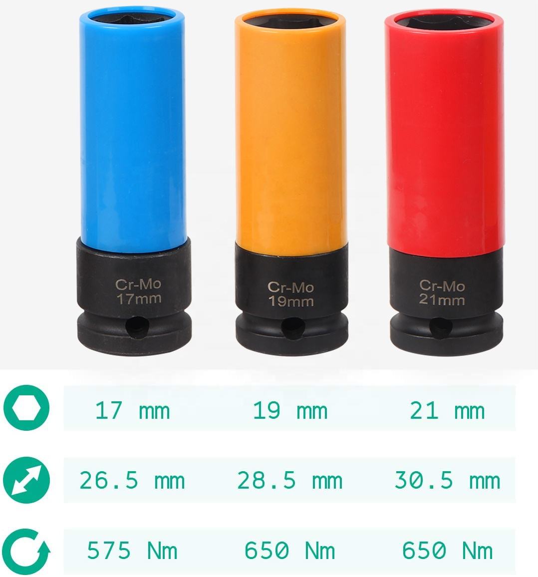 3pc 1/2″ Dr Deep Impact Sockets for Alloy Wheels 17mm,19mm,21mm (VT01222)