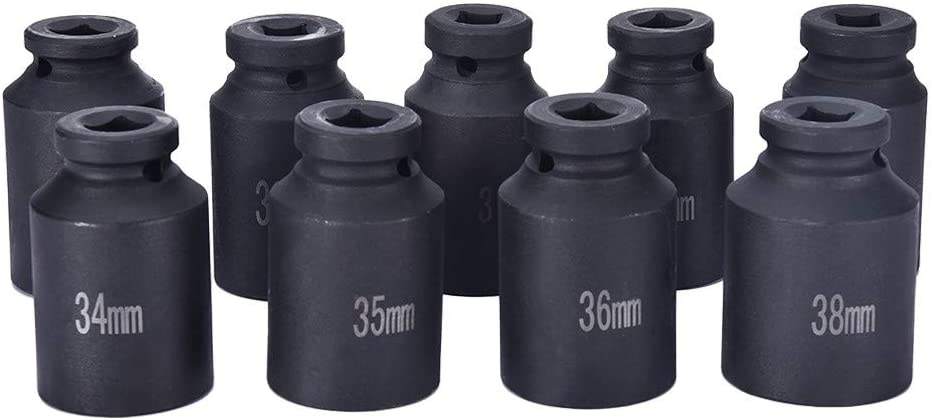 9PCS Pro Axle Nut Impact Socket Bit Set Front and Back 29, 30, 31, 32, 33, 34, 35, 36MM Wheel Driver Sockets Tool VT01645D